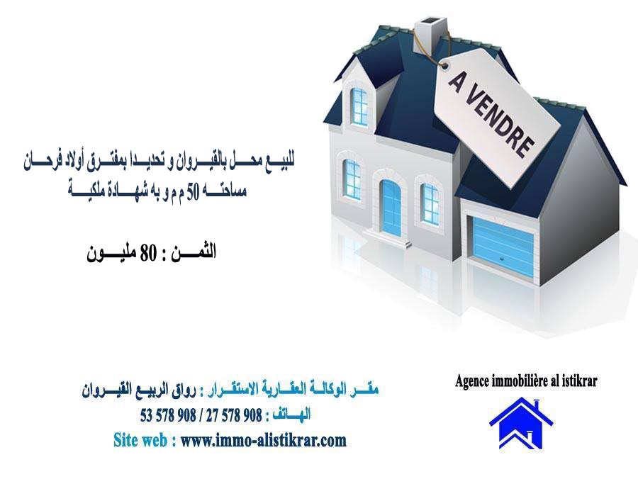 للبيع محل بالقيروان و تحديدا بمفترق أولاد فرحان
